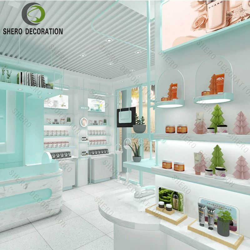 ตู้โชว์เครื่องสำอางที่มีสีสันเฟอร์นิเจอร์เชิงพาณิชย์ระดับมืออาชีพตู้โชว์เครื่องสำอางที่ทนทานสำหรับการออกแบบตกแต่งภายในร้านค้า