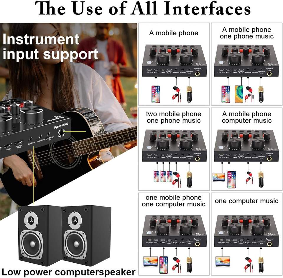 Professional Condenser Microphone V8 Sound Card Set for Webcast Live Recording