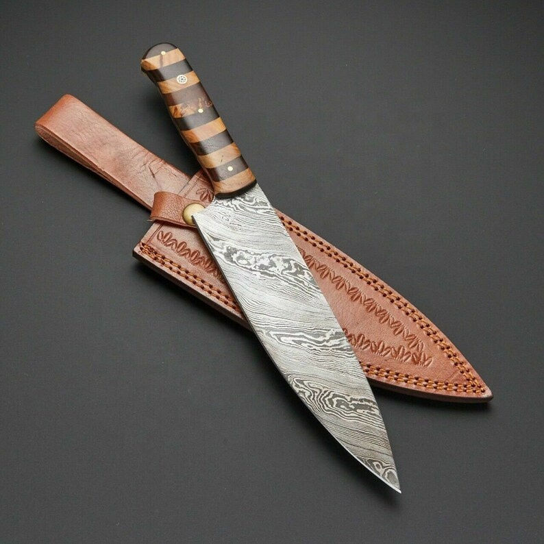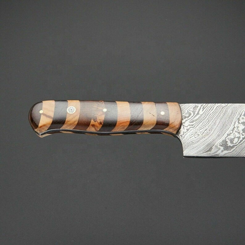 มีดทำครัวระดับมืออาชีพ ใบมีดเหล็กดามัสกัส VG-10 ด้ามไม้ ล้างในเครื่องล้างจานได้ ผลิตด้วยวิธีการตีขึ้นรูป มีดครัวคุณภาพสูง