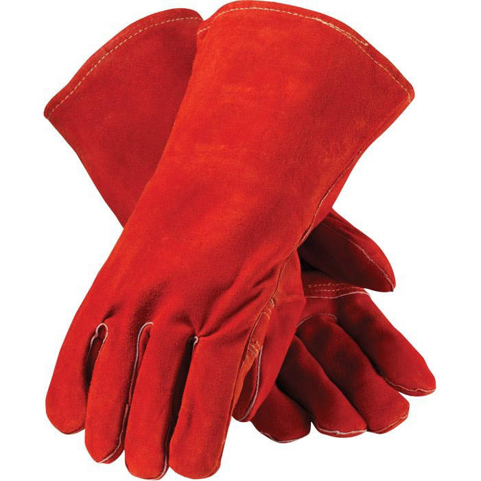 ถุงมือทำงานนิรภัยสำหรับมืออาชีพ หนังวัวแท้ บุผ้าฝ้ายขนแกะ ป้องกันไฟ ป้องกันการบาด ป้องกันแรงกระแทก ขนาด 35 ซม.