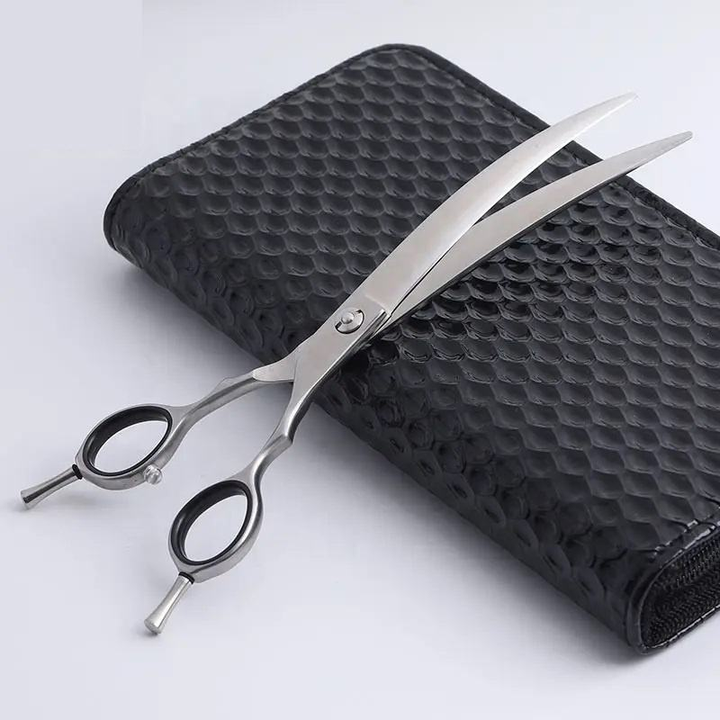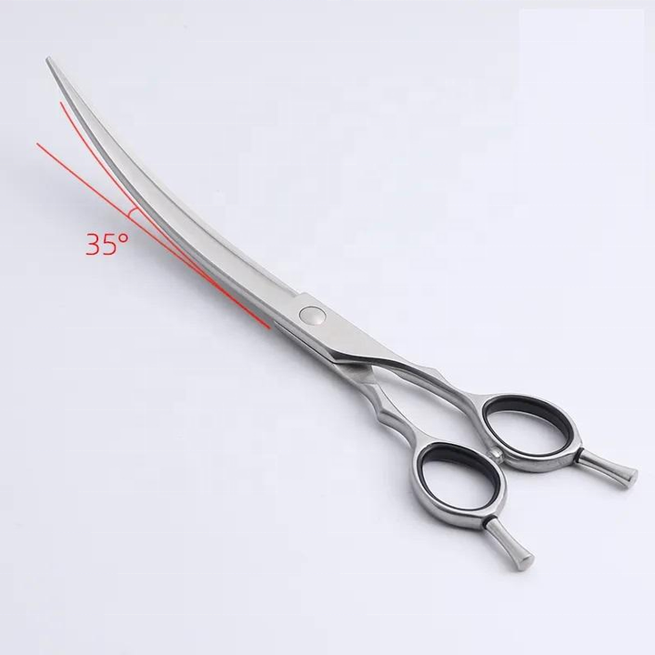 กรรไกรเล็มขนโค้งแบบมืออาชีพกรรไกรตัดขนสัตว์เลี้ยงสุนัขสแตนเลสเป็นมิตรกับสิ่งแวดล้อมพร้อมบรรจุภัณฑ์แบบกำหนดเอง