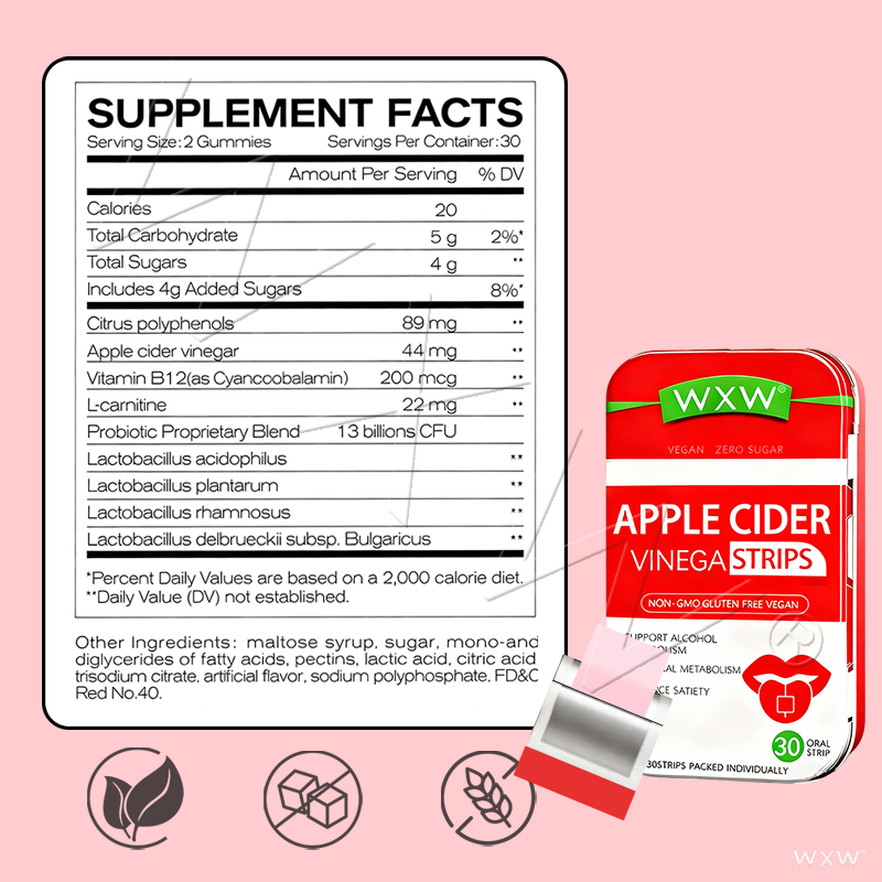น้ำส้มสายชูแอปเปิ้ลไซเดอร์สำหรับมืออาชีพแถบสำหรับลดน้ำหนักอาหารเสริมเพื่อสุขภาพสำหรับช่องปาก