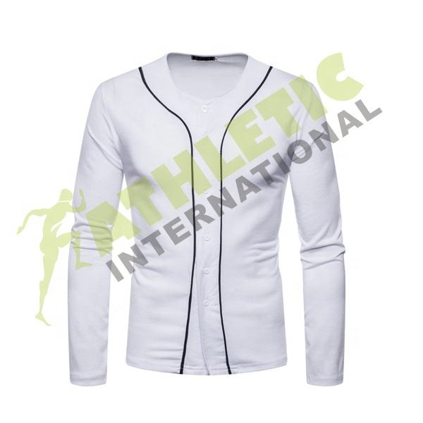 เสื้อเจอร์ซีย์สำหรับใส่เล่นกีฬาเสื้อเจอร์ซีย์แขนยาวแบบปุ่มสำหรับเล่นเบสบอลงานตามสั่ง