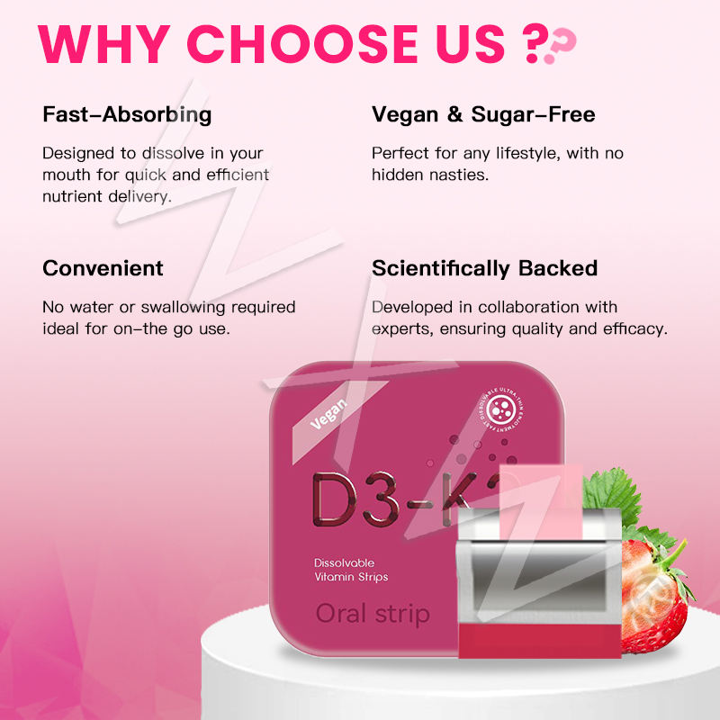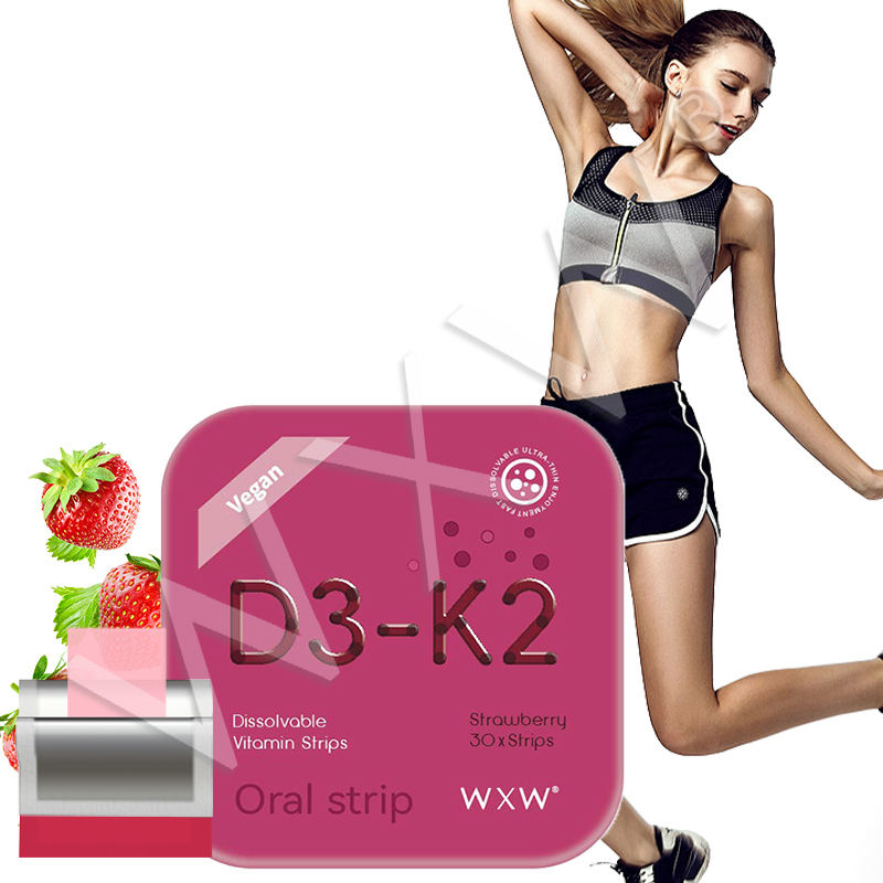 แผ่นเสริมอาหารแบบมืออาชีพ D3-K2 รสสตรอว์เบอร์รี รูปแบบฟิล์ม ชนิดรับประทาน