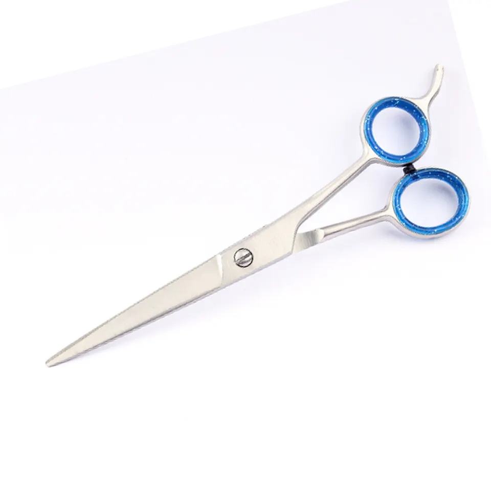 กรรไกรตัดผมมืออาชีพ ทำมือ สแตนเลส ขอบเรียบ สีเงิน สำหรับตัดผมเองที่บ้าน