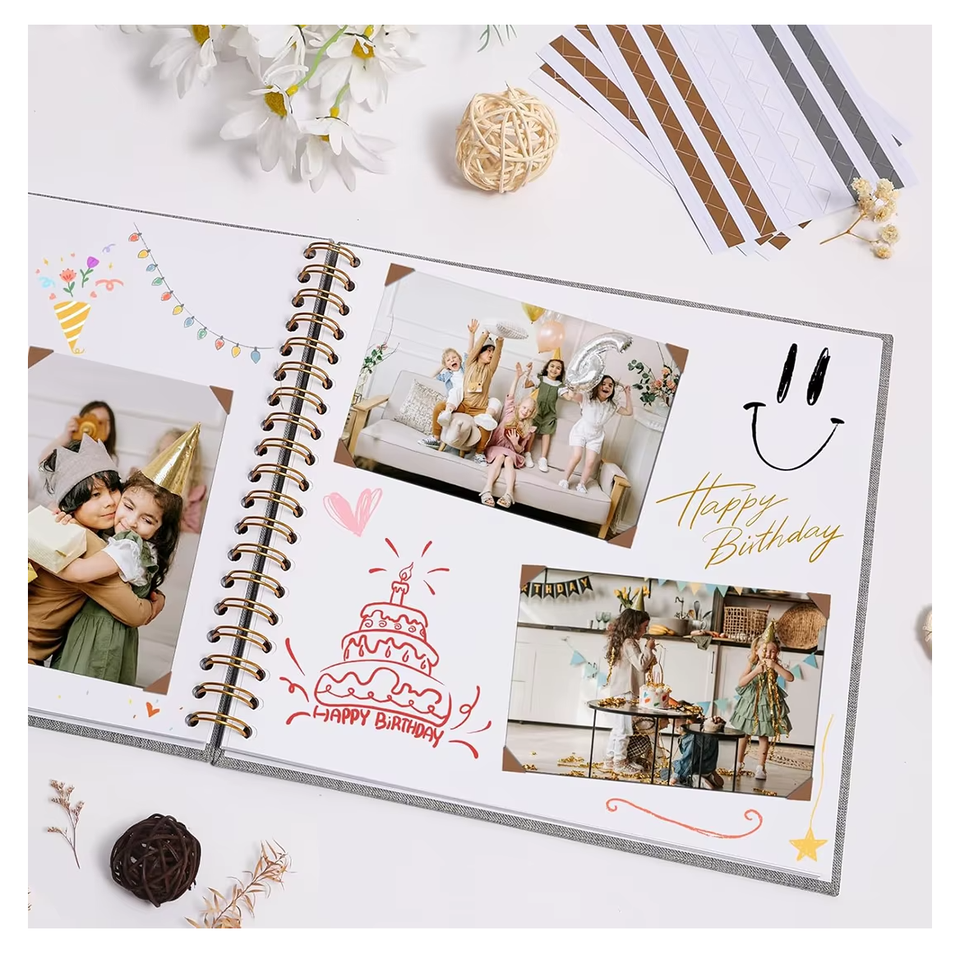 อัลบั้มรูปธรรมชาติ100หน้าสำหรับทำมือพร้อมโลโก้นูนสำหรับความทรงจำในงานแต่งงานแบบพกพาและเป็นของขวัญ