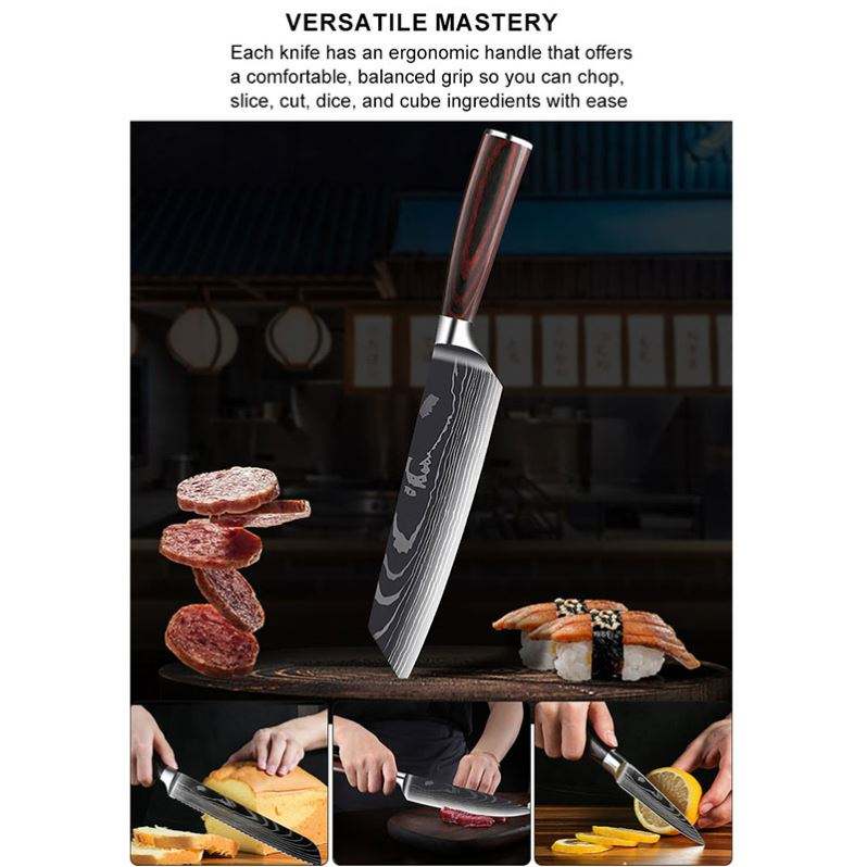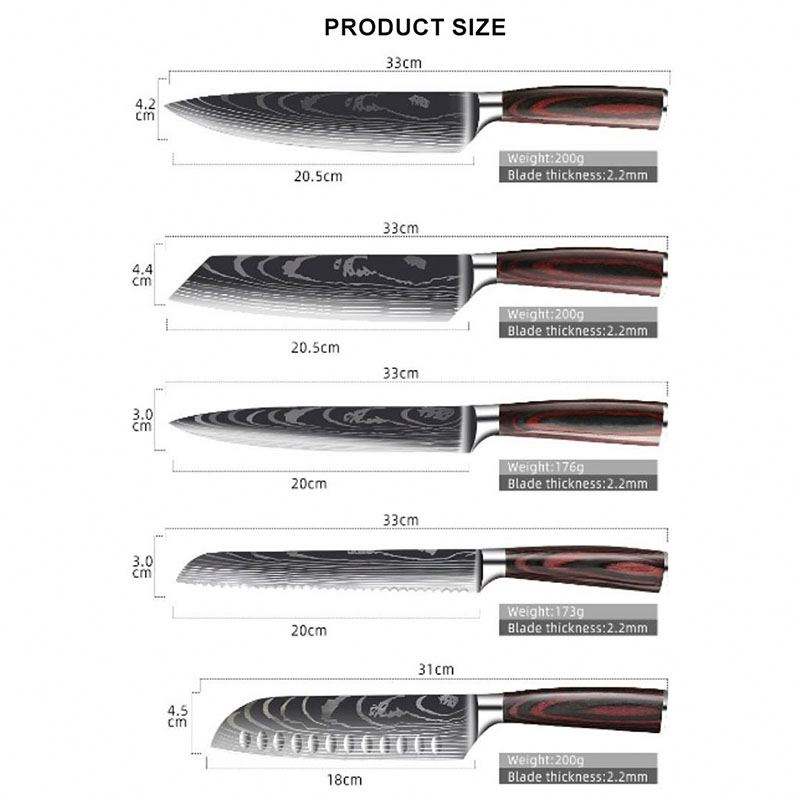 Professional Custom Japanese Stainless Steel Damascus Chef Kitchen Knives Resin Wood Pattern Engraved Utility Paring Knife Set