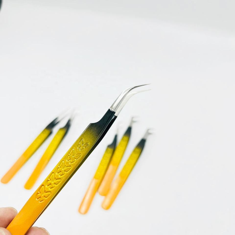 แหนบถอนขนตาแบบฝุ่นสามโทนโค้ง45องศาปรับแต่งโลโก้ได้ตามต้องการ