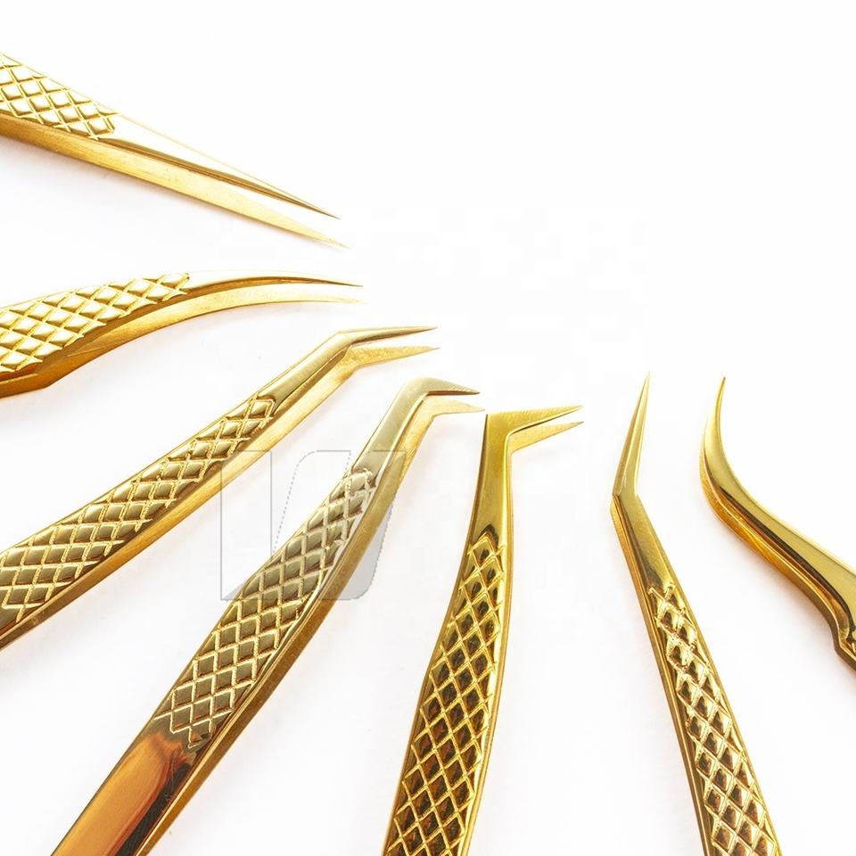 แหนบต่อขนตาแบบคงทนปลายแหลมทนทานเคลือบทองทำโลโก้ได้ตามต้องการจากญี่ปุ่น