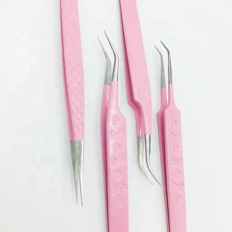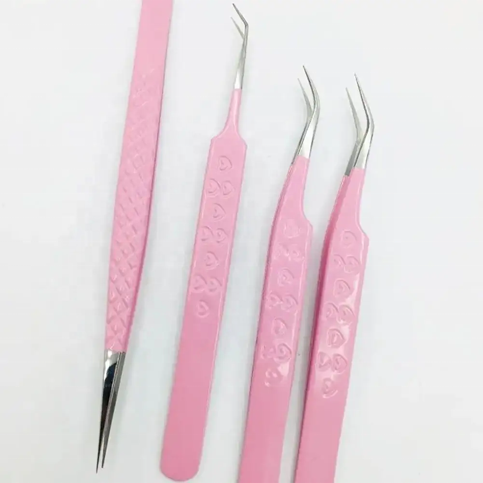 ขนตาปลอมแบบคลาสสิกแหนบรูปหัวใจสีชมพูพร้อมปลายแหลมอุปกรณ์ขนตาแบบคลาสสิกโลโก้ออกแบบได้ตามต้องการ