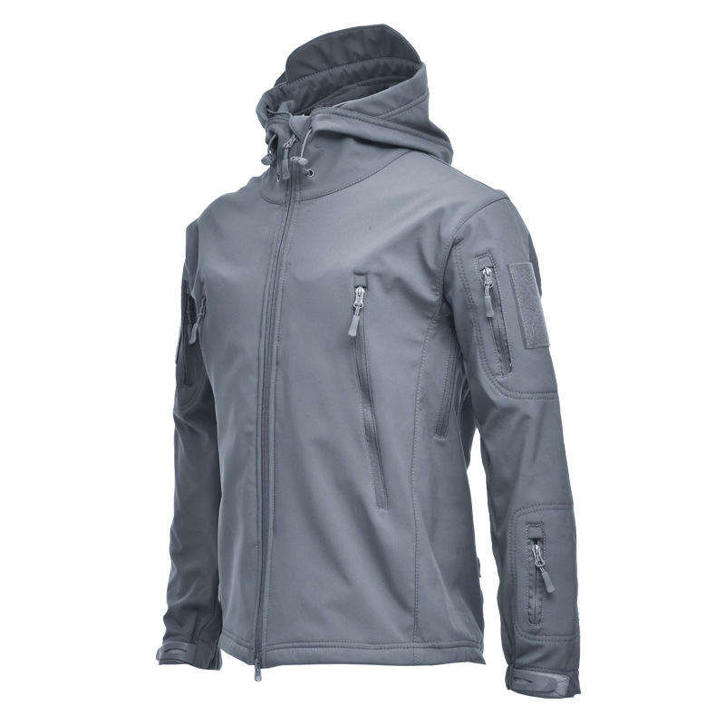 โลโก้ที่กําหนดเองมืออาชีพขายส่งคุณภาพสูงสีเทาผู้ชายเสื้อกันลมกันน้ํากลางแจ้งแจ็คเก็ตเปลือกหอยนุ่มสําหรับผู้ชาย