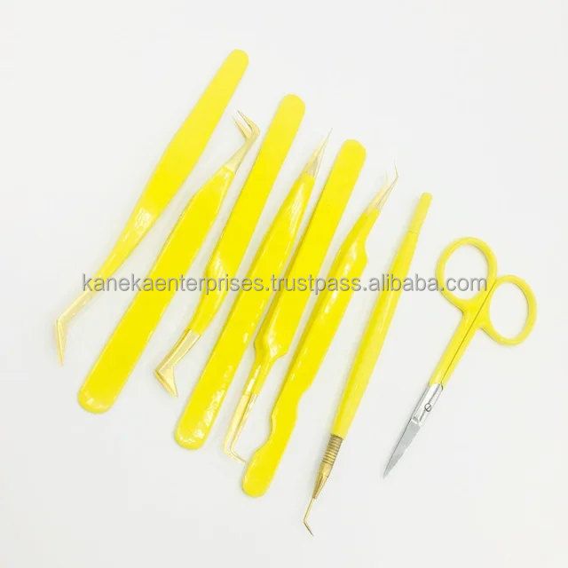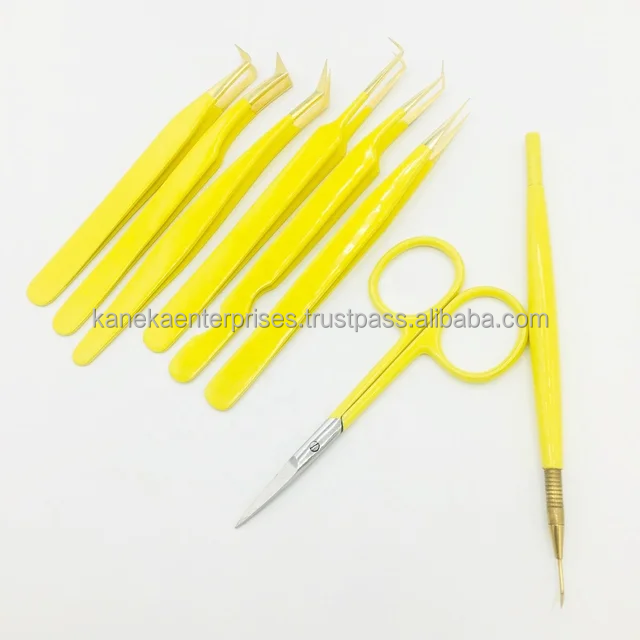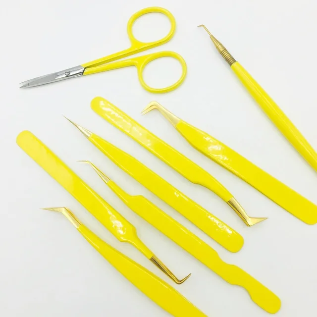 แหนบต่อขนตาแบบมืออาชีพ โลโก้สั่งทำพิเศษ สีเหลืองทอง สแตนเลสสตีล ป้องกันแม่เหล็ก แม่นยำ ทนทาน จับถนัดมือ ใช้งานได้อย่างราบรื่น