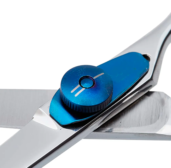 กรรไกรสแตนเลสสำหรับช่างตัดผมทำจากโลหะสีทองปรับได้สำหรับมืออาชีพ