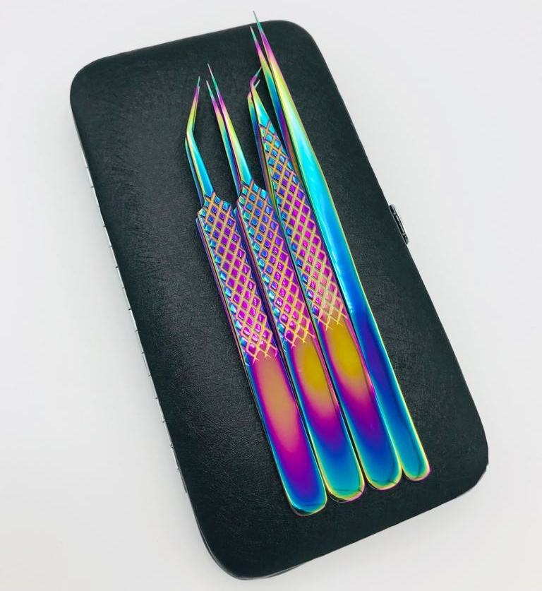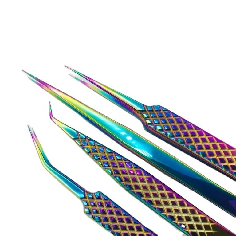แหนบหนีบขนตาแบบคงทนแหนบปลายสีรุ้งพลาสม่าผลิตตามสั่งแบบมืออาชีพ