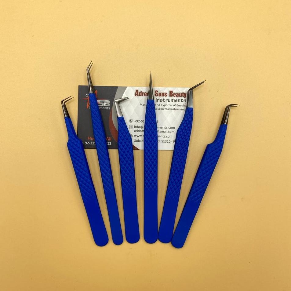 แหนบต่อขนตาจับเพชรสีฟ้าและสีดำแบบมืออาชีพออกแบบได้อย่างยั่งยืนทำจากสเตนเลสปลายแหลม