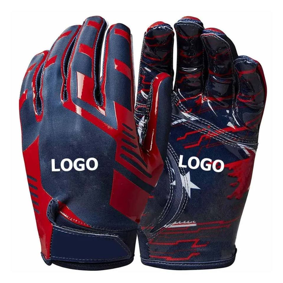 ถุงมือรับบอลอเมริกันฟุตบอลแบบซิลิโคนกันลื่นสำหรับมืออาชีพ ผลิตตามสั่ง ออกแบบโลโก้ได้เอง สำหรับทุกเพศ ถุงมือรักบี้