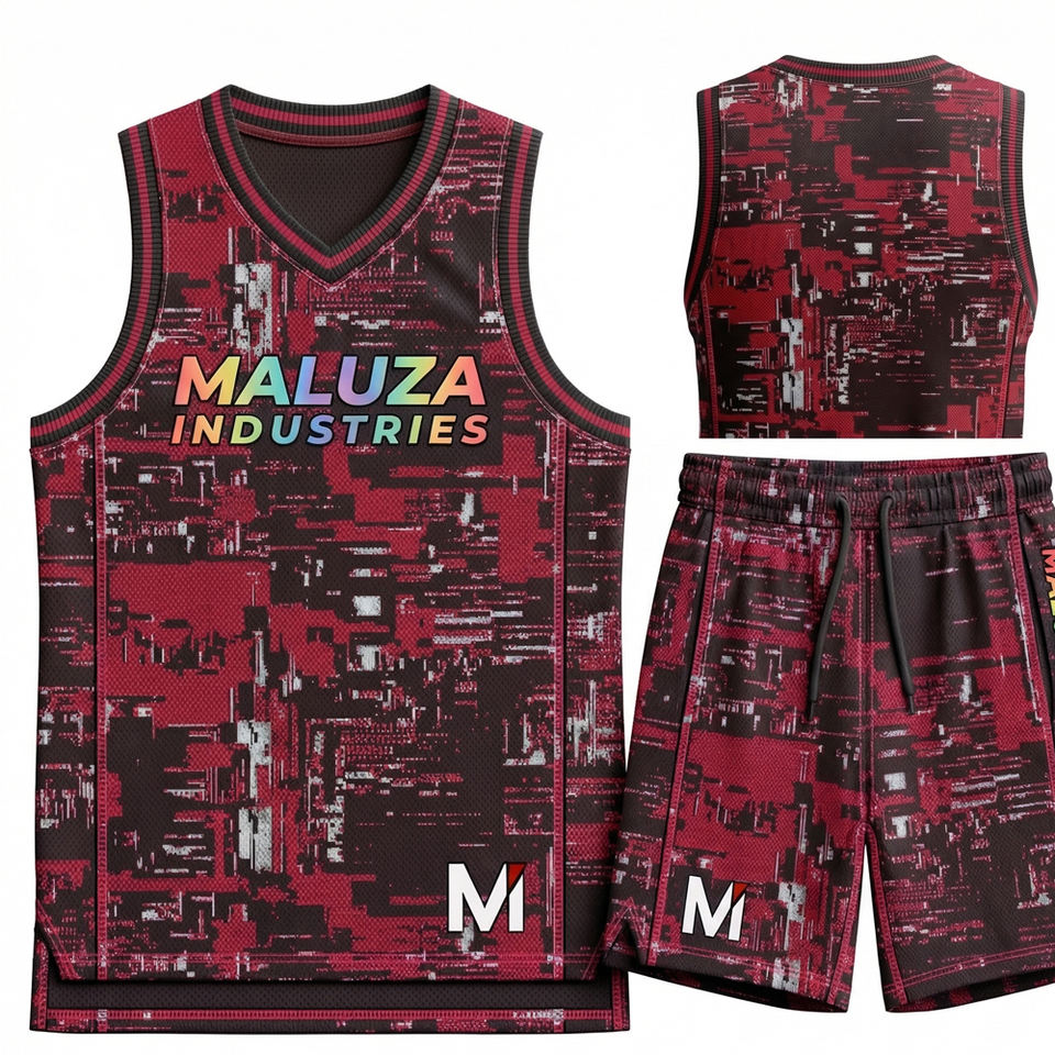 ชุดยูนิฟอร์มบาสเก็ตบอลแบบซับลิเมชั่นสั่งทำระดับมืออาชีพสำหรับทีมชาย เสื้อและกางเกงขาสั้น ชุดพิมพ์ลายสีเต็มรูปแบบ ชุดกีฬา