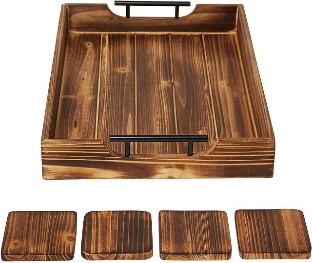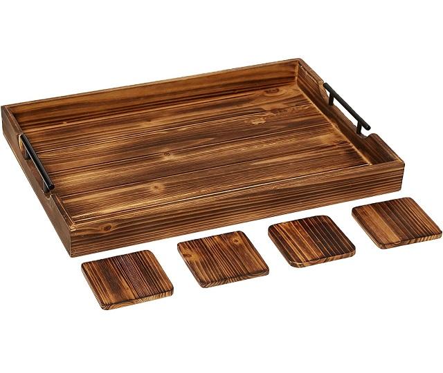 ชุดถาดเสิร์ฟไม้พร้อมจานรองแก้วไม้สำหรับโต๊ะกาแฟหรือเคาน์เตอร์แบบมืออาชีพ
