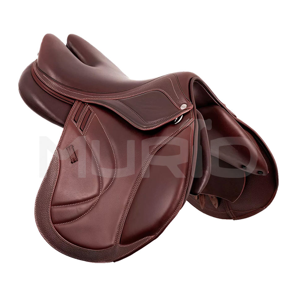 อานม้าเดรสสาจหนังแท้สีน้ำตาลแบบมืออาชีพ โครงไม้ หนังธรรมชาติ นุ่มสบาย ทนทาน