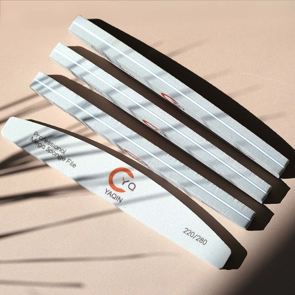 ตะไบเล็บฟองน้ำสำหรับทำเล็บ100/180 80/120แบบมืออาชีพพร้อมเม็ดสี220/280โลโก้แบบครึ่งวง