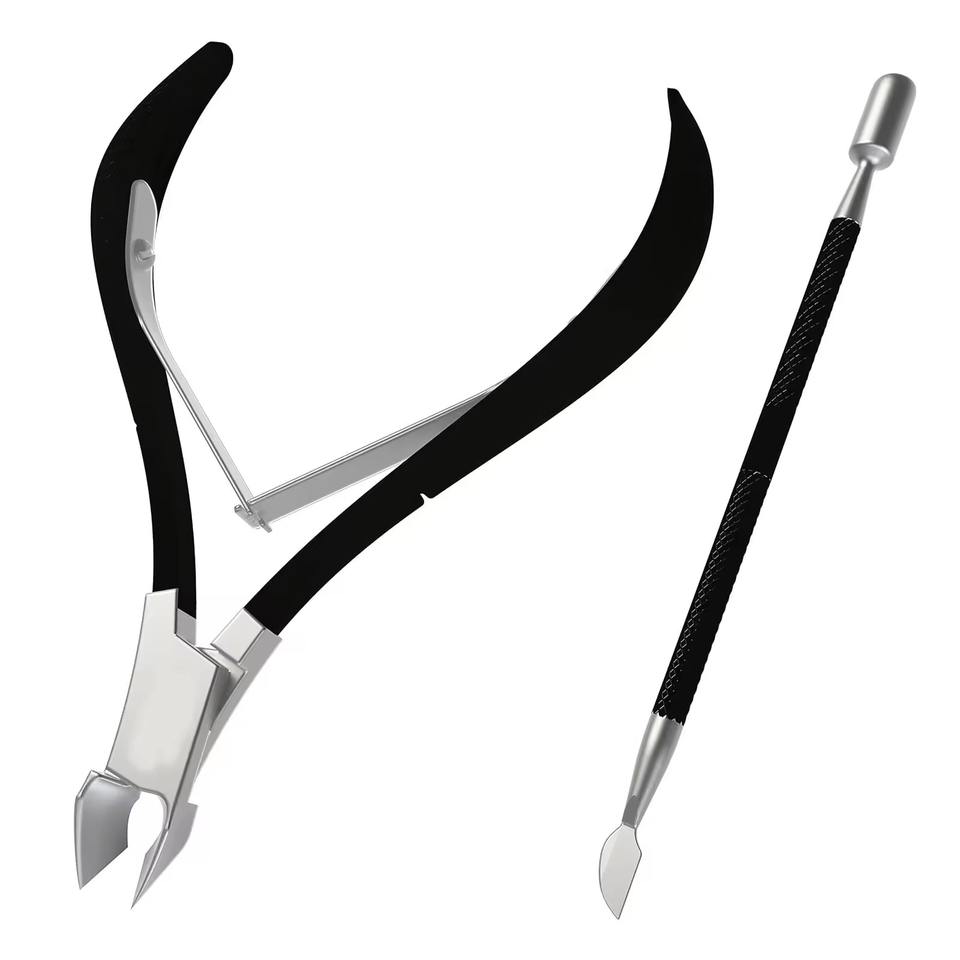 ชุดคีมตัดหนังและที่ดันหนังกำพร้ามืออาชีพสแตนเลสพร้อมที่จับสีดำเครื่องมือความงามที่แม่นยำสำหรับการดูแลเล็บโดย zuol