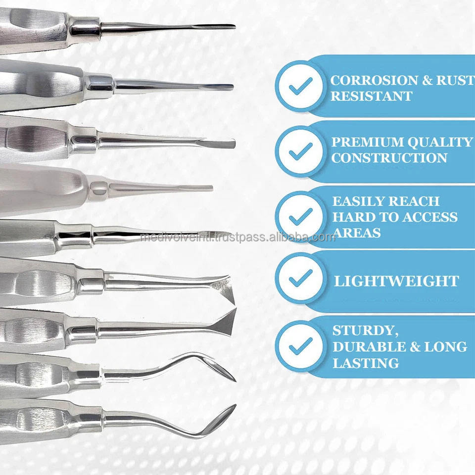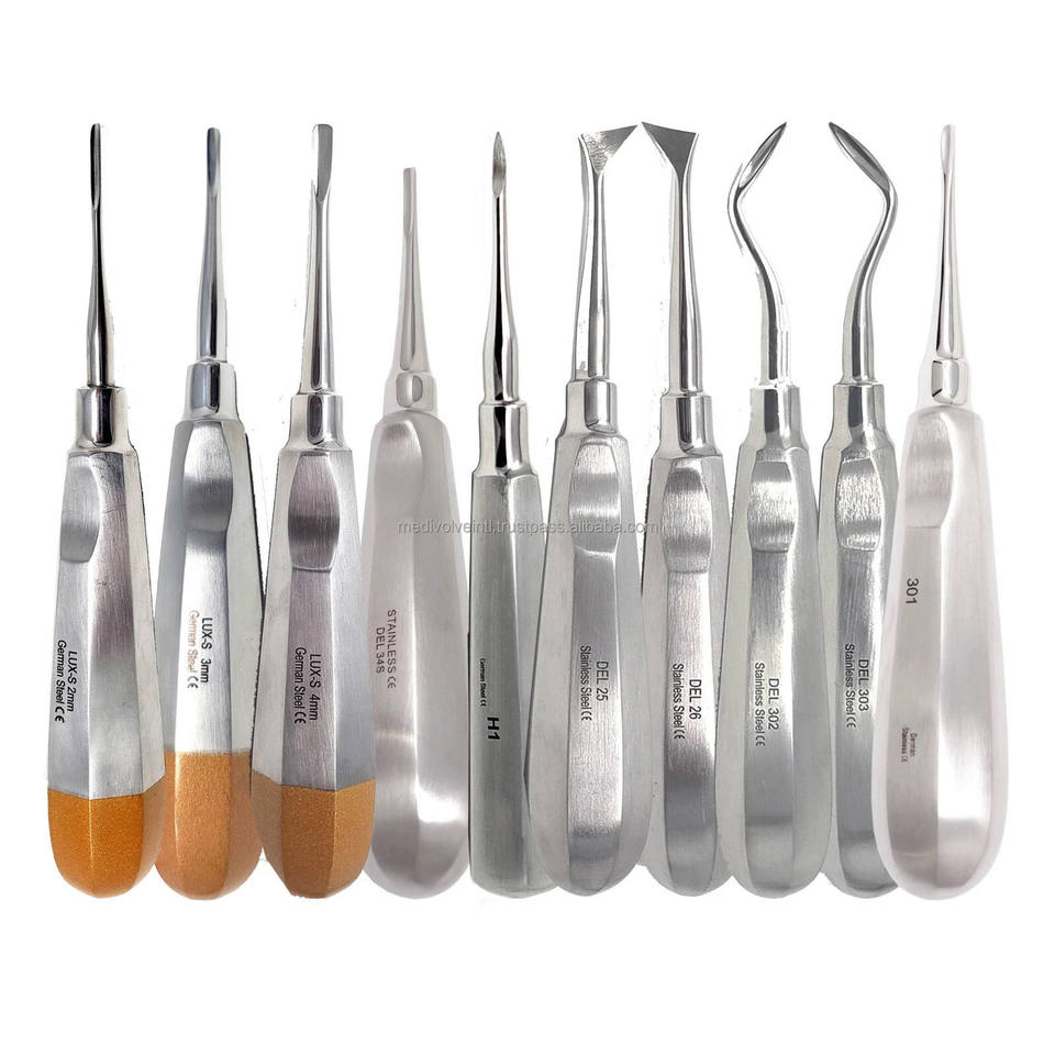 ชุดเครื่องมือถอนฟันคุณภาพสูง ชุดเครื่องมือถอนฟันเหล็กเยอรมัน 10 ชิ้น เครื่องมือผ่าตัดถอนฟัน เครื่องมือปลายรากฟัน ชุดเครื่องมือ Luxating Cryer