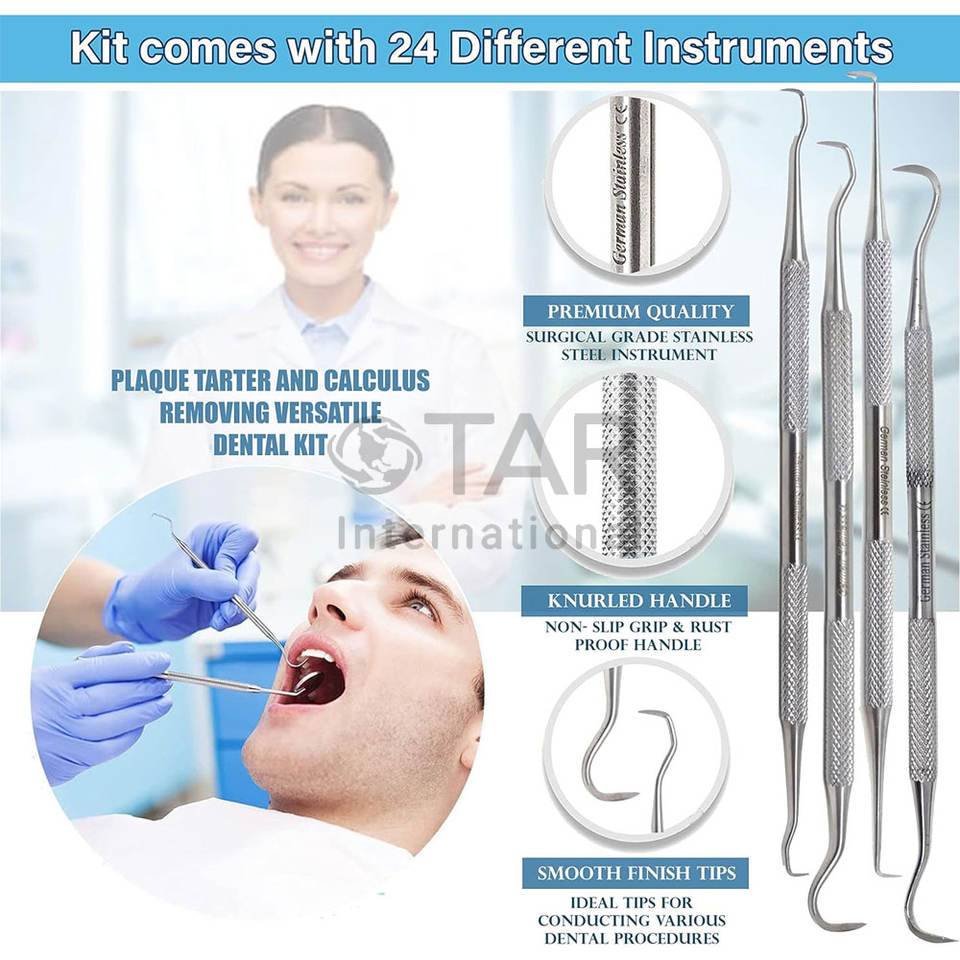 ชุดสุขอนามัยทันตกรรมมืออาชีพสำหรับการดูแลช่องปากเครื่องมือทางการแพทย์ที่ใช้กำจัดแคลคูลัสสแตนเลสเกรดพรีเมี่ยม