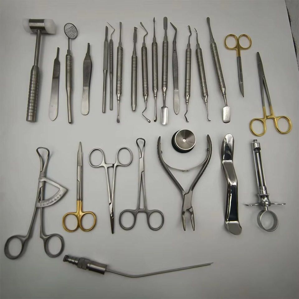 ชุดเครื่องมือผ่าตัดทางทันตกรรมแบบมืออาชีพ ทำจากสแตนเลส พร้อมค้อน คีม และเครื่องมือวินิจฉัยสำหรับการผ่าตัดช่องปาก