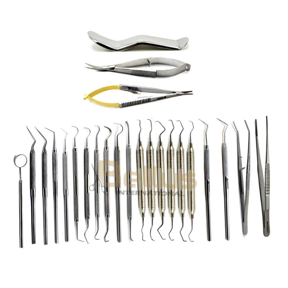 ชุดเครื่องมือทำฟันแบบมืออาชีพทำจากสเตนเลสสตีลสำหรับวัสดุอุดฟันเครื่องมือสุขอนามัยช่องปากอเนกประสงค์ปรับแต่งได้