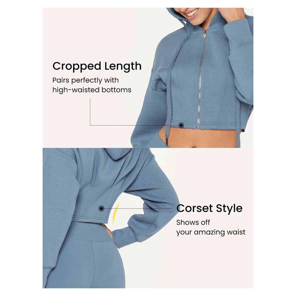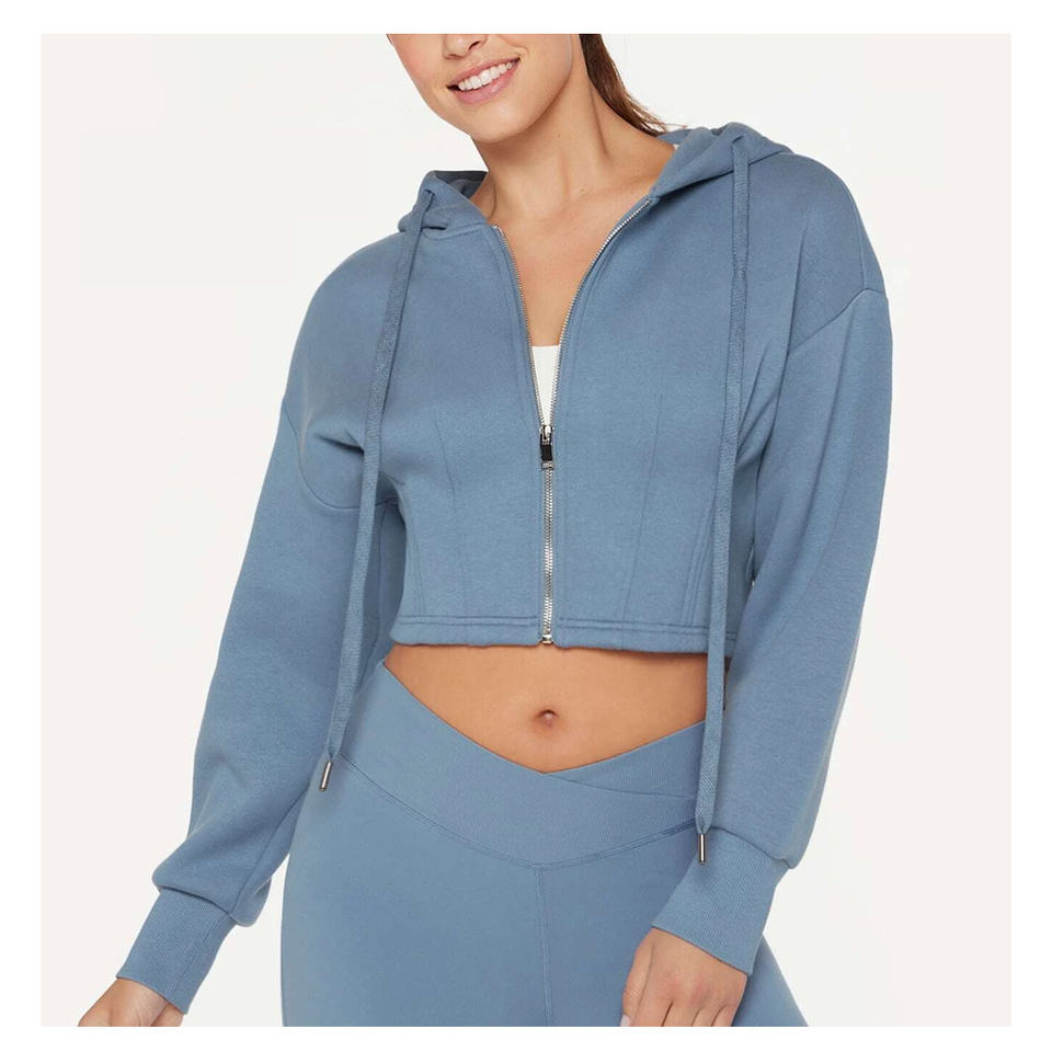 เสื้อฮู้ดเอวลอยออกแบบโลโก้ได้ตามต้องการสำหรับผู้หญิงผ้าถักแฟชั่น