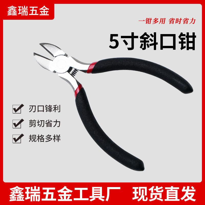 คีมปากเฉียงแบบมืออาชีพ 5 นิ้ว ผลิตจากเหล็กโครเมียมวาเนเดียม เกรดอุตสาหกรรม ปากเรียบ ปากเฉียง ด้ามจับสีดำแดง