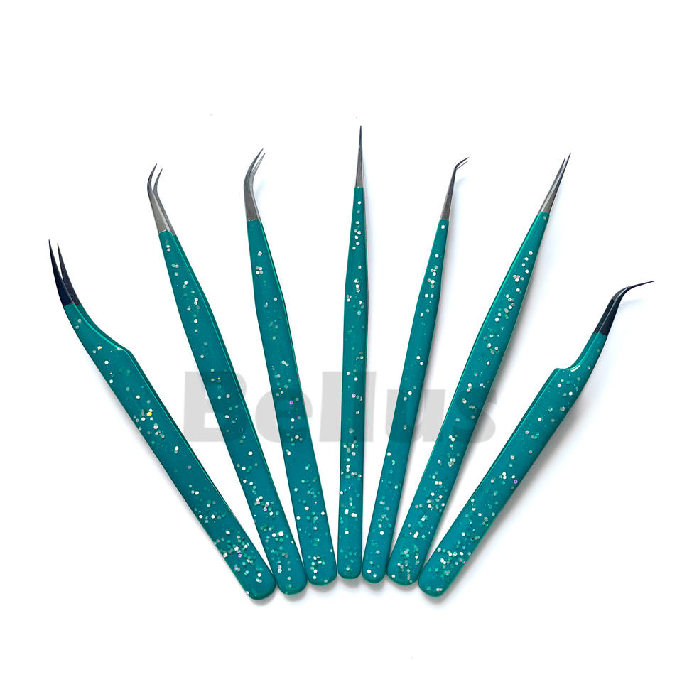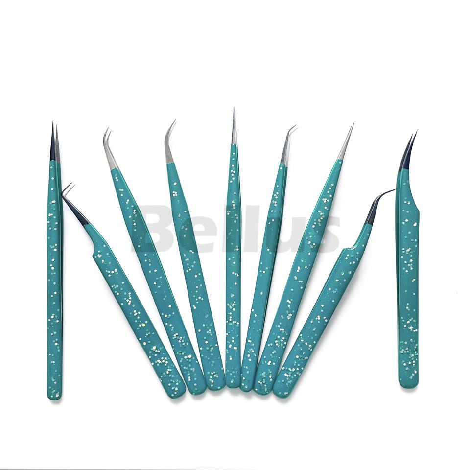 แหนบขนตาแวววาวแบบมืออาชีพที่ทำจากสแตนเลสอย่างยั่งยืนพร้อมปลายแหลมที่มีความแม่นยำสูง