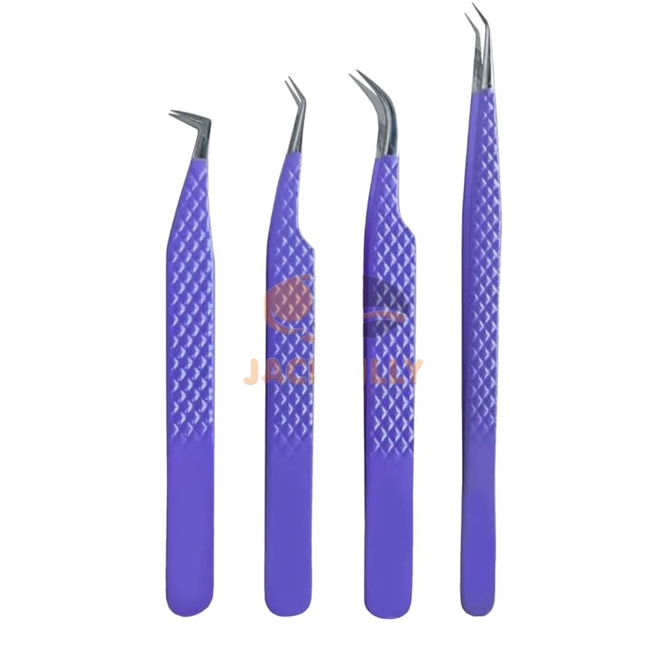 ชุดต่อขนตาปลายสแตนเลส4ชิ้นชุดแหนบปลายขนตาจับเพชรแบบมืออาชีพ