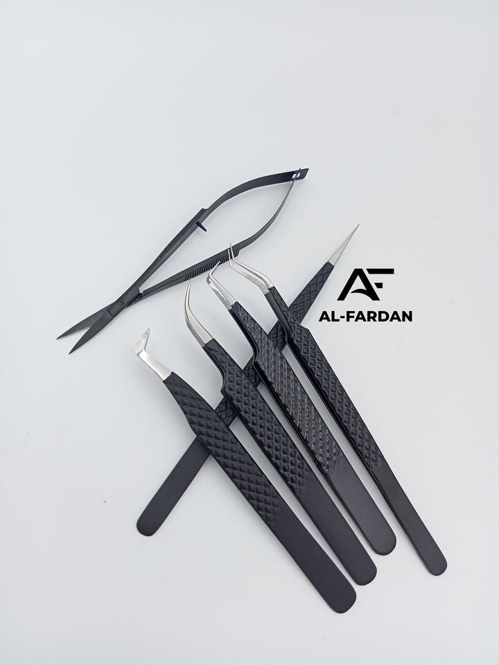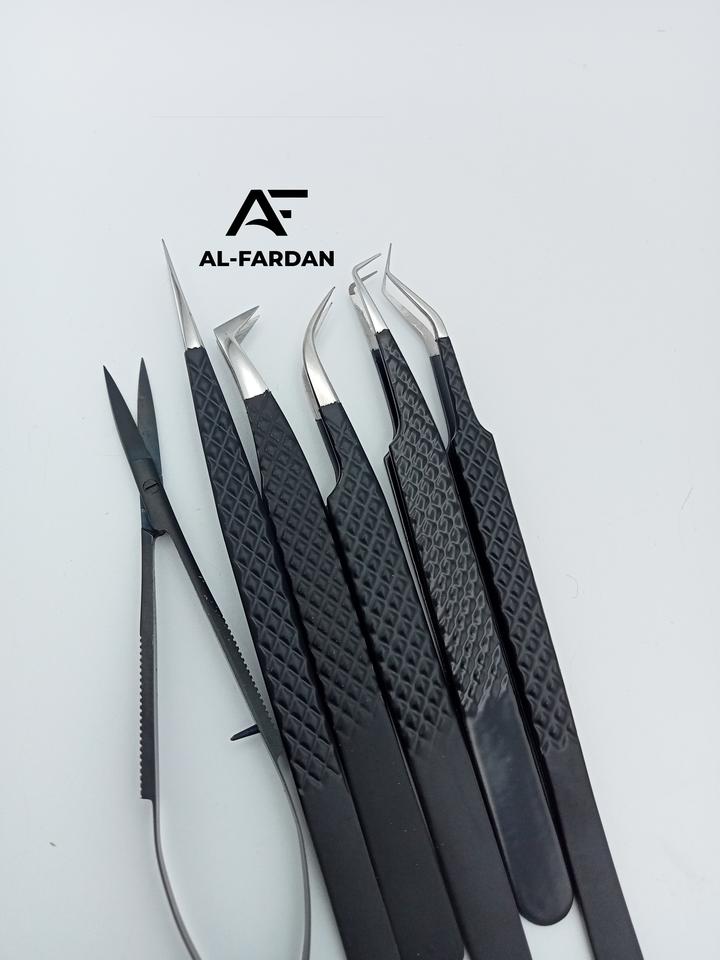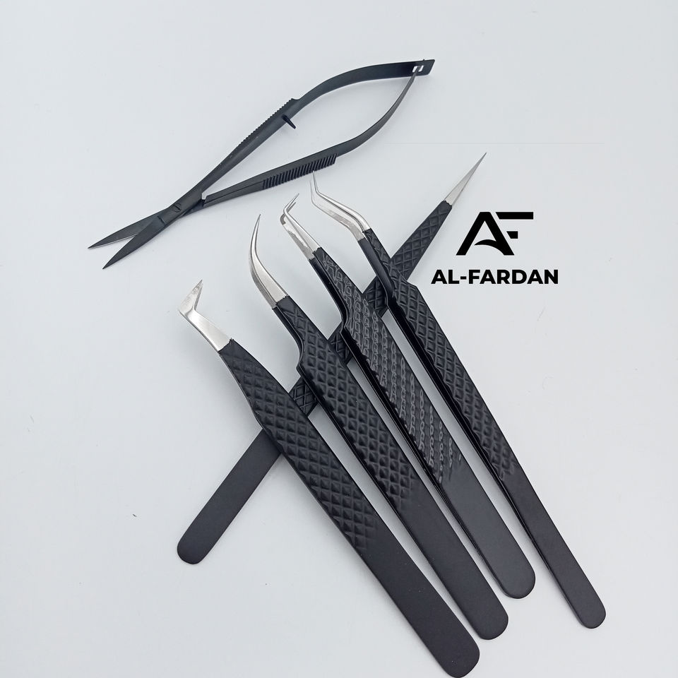Professional Diamond Grip Volume Solid Stainless Steel Eyebrow Scissors Matte Black Lash Extension Tweezers with Pointed Tip