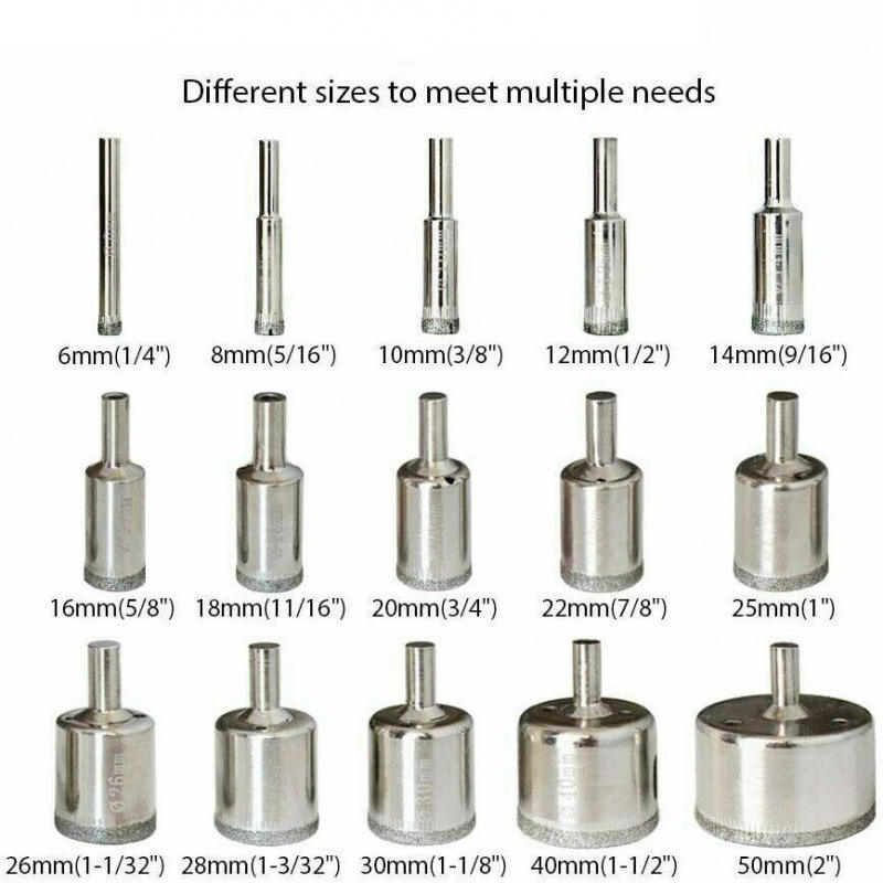 ชุดเลื่อยเจาะเพชรแบบมืออาชีพ 6-50 มม. สำหรับเจาะกระเบื้อง หินอ่อน แก้ว พร้อมปลายคาร์ไบด์และการวัดแบบเมตริก