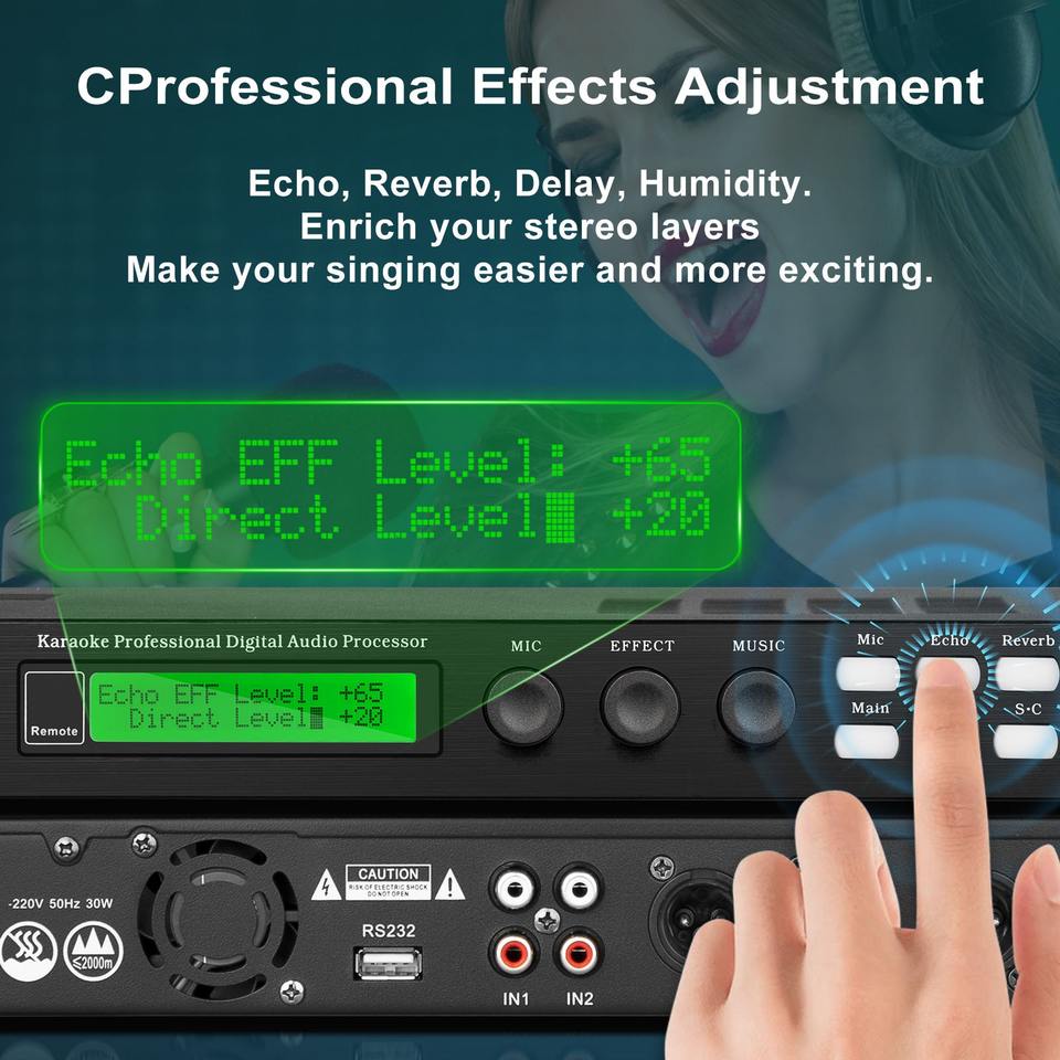 ระบบเสียงดีเจแบบมืออาชีพตั้งค่าเต็มรูปแบบโปรเซสเซอร์เสียงดิจิตอลคาราโอเกะยูเอสบี BT ระบบเสียงกลางแจ้งแบบมืออาชีพ