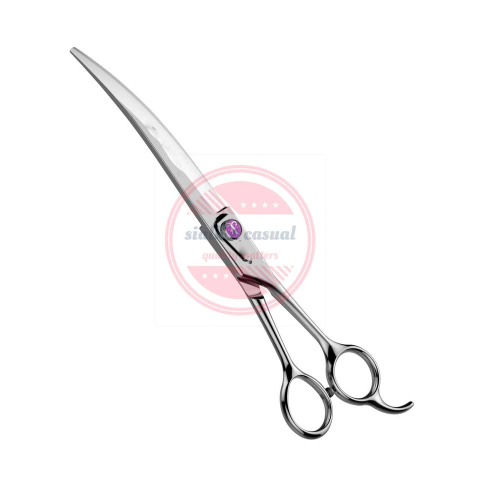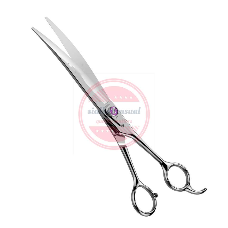 กรรไกรตัดขนสุนัขแบบมืออาชีพกรรไกรใบมีดโค้งสำหรับแต่งขนสัตว์เลี้ยง