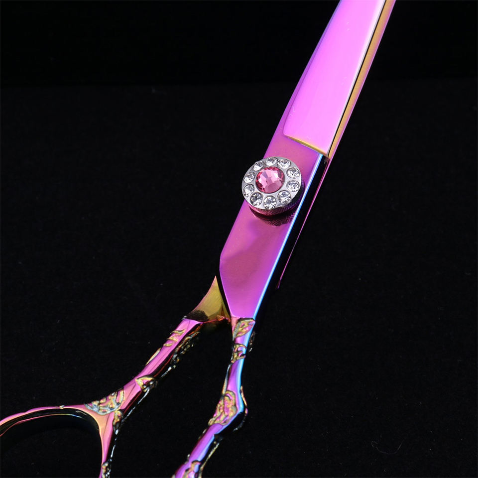กรรไกรตัดผมด้ามจับลายมังกรแบบมืออาชีพกรรไกรทำจากสเตนเลสสตีลเคลือบหลายสีระดับพรีเมียมกระเป๋าหนัง PU สำหรับช่างตัดผม