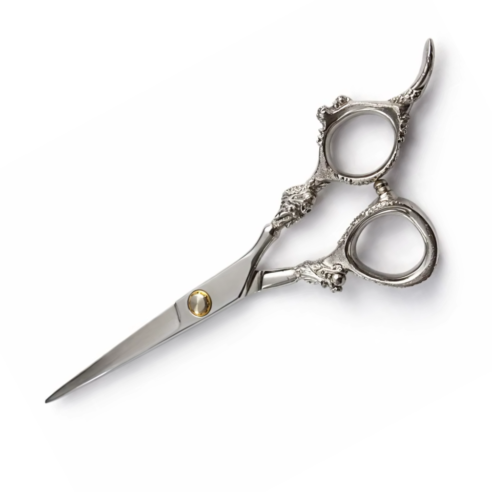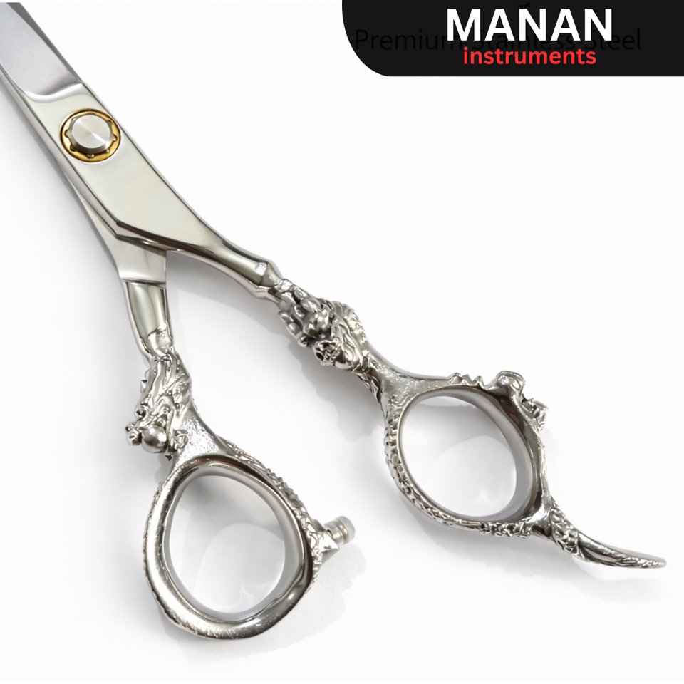 กรรไกรตัดผมมืออาชีพ ด้ามจับรูปทรงมังกร คมสำหรับคนถนัดขวา ขนาดกลาง ทำจากสแตนเลส เหมาะสำหรับร้านทำผม