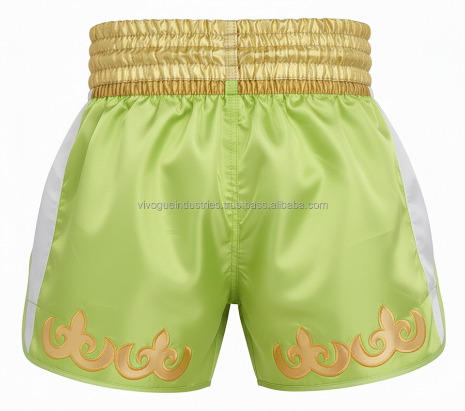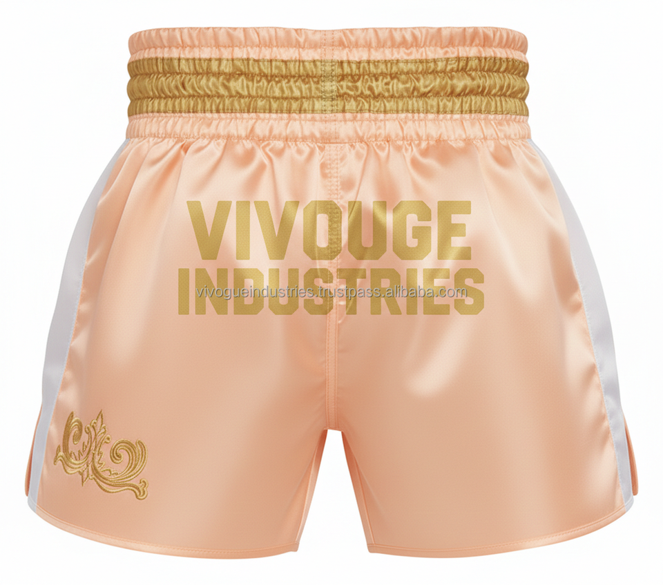 กางเกงมวยไทยผ้าซาตินโพลีเอสเตอร์ 100% ปักลาย 3 มิติ คุณภาพระดับมืออาชีพ ทนทาน รับผลิตตามแบบ สั่งทำแบรนด์ส่วนตัวได้