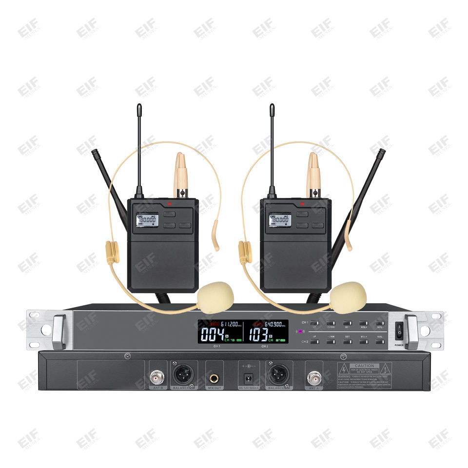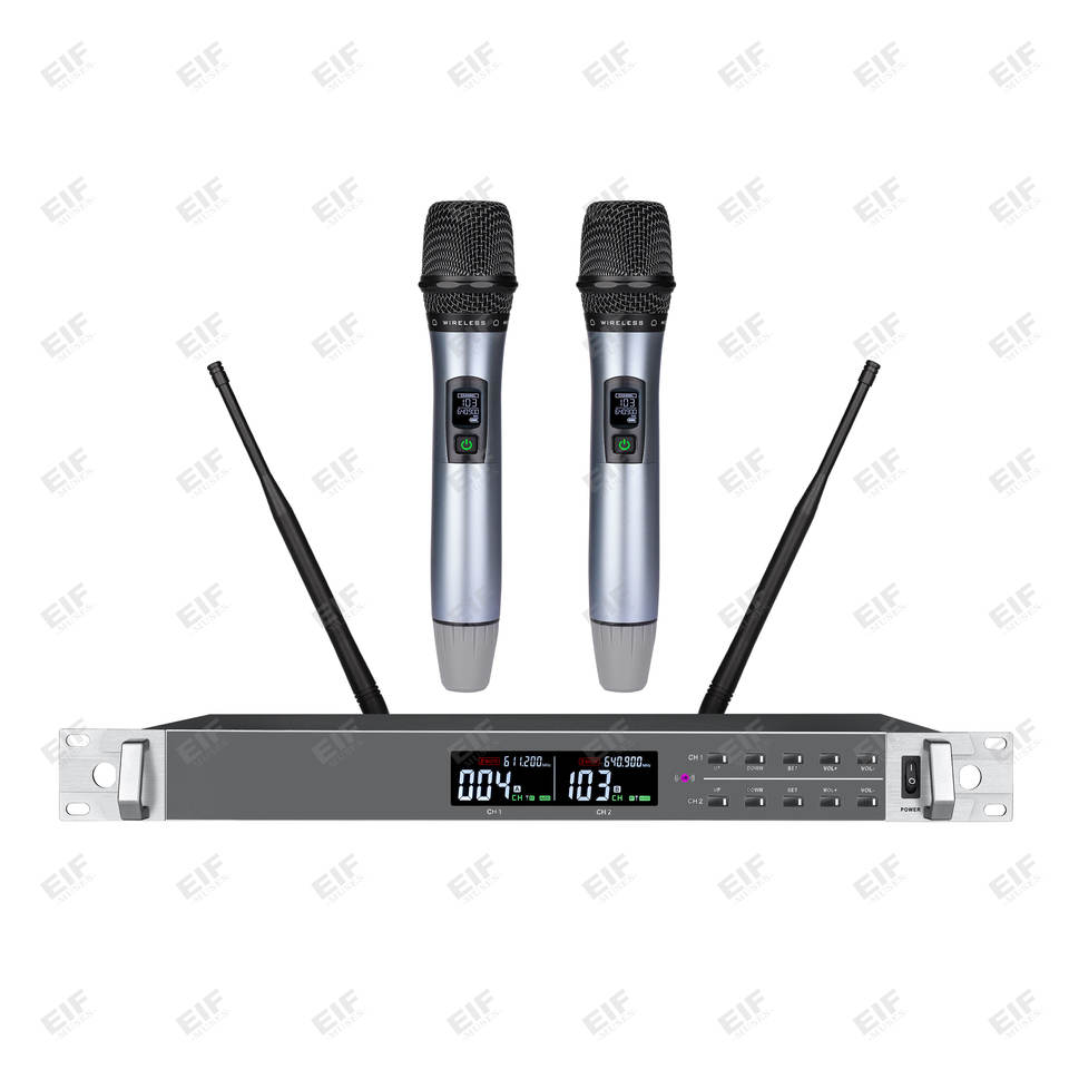 ระบบไมโครโฟนไร้สายแบบมือถือสองช่องสัญญาณ EIF HD-2000 ระดับมืออาชีพ น้ำหนักเบา ความไวสูง วัสดุพลาสติก อินฟราเรด