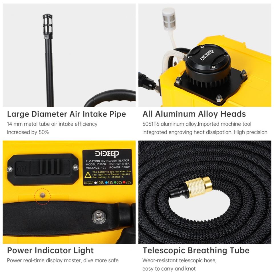 เครื่องช่วยหายใจไฟฟ้าสำหรับดำน้ำแบบมืออาชีพ สำหรับอุปกรณ์ปั๊มลมดำน้ำ ใช้งานได้ 2-5 ชั่วโมง อุปกรณ์ดำน้ำ สีเหลือง/เขียว รับรองมาตรฐาน CE