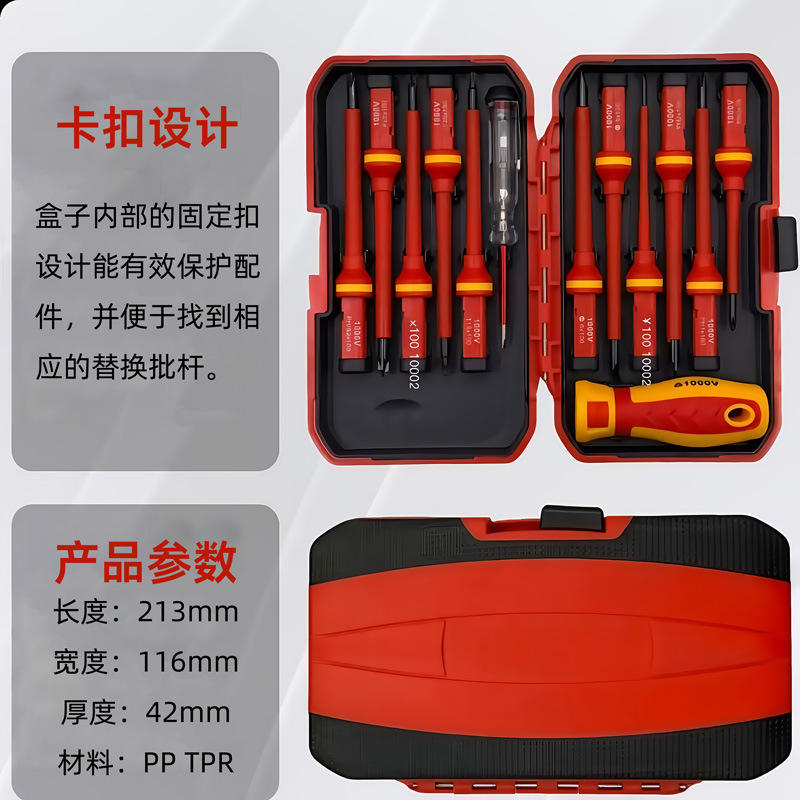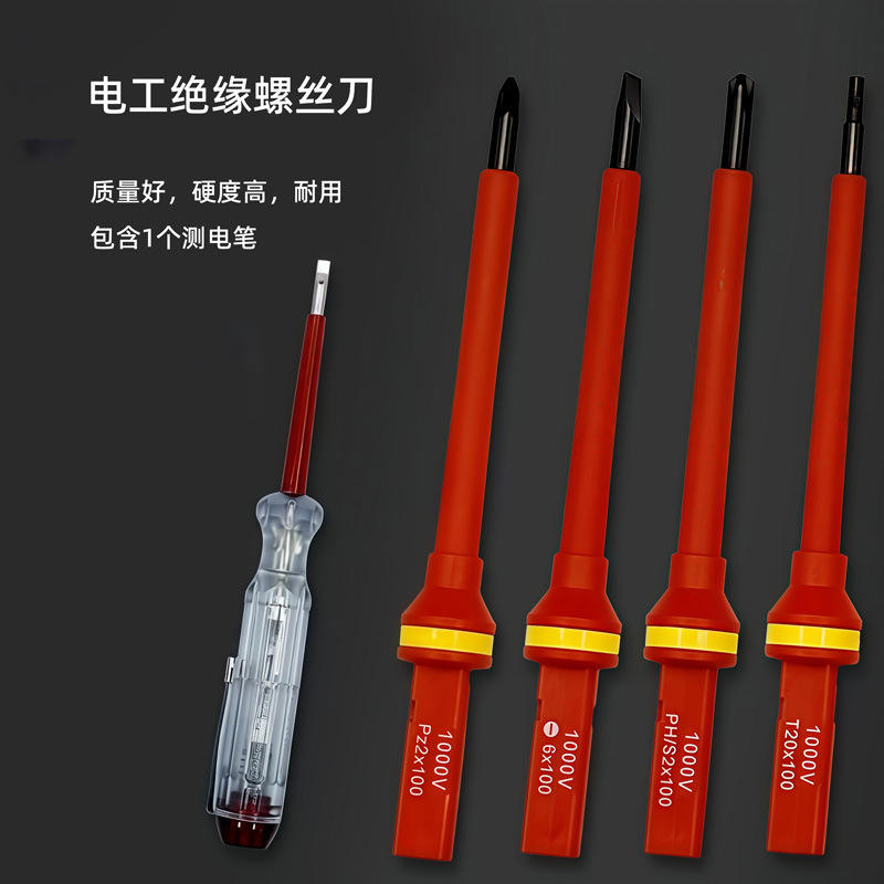 ชุดไขควงหุ้มฉนวนสำหรับช่างไฟฟ้ามืออาชีพ 1000V หัวแบน 4 ชิ้น พร้อมเครื่องทดสอบแรงดันไฟฟ้า