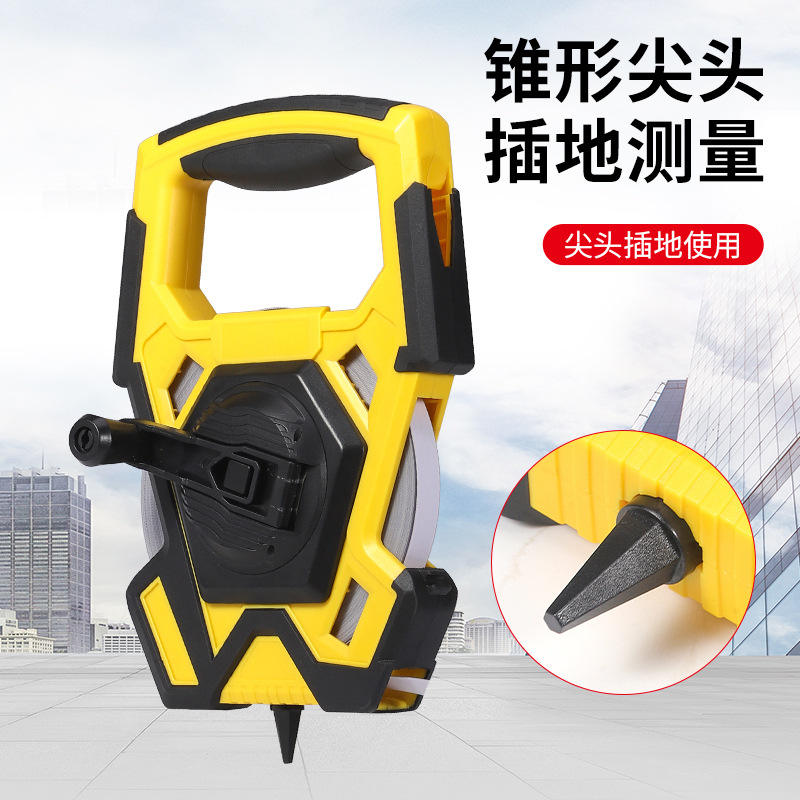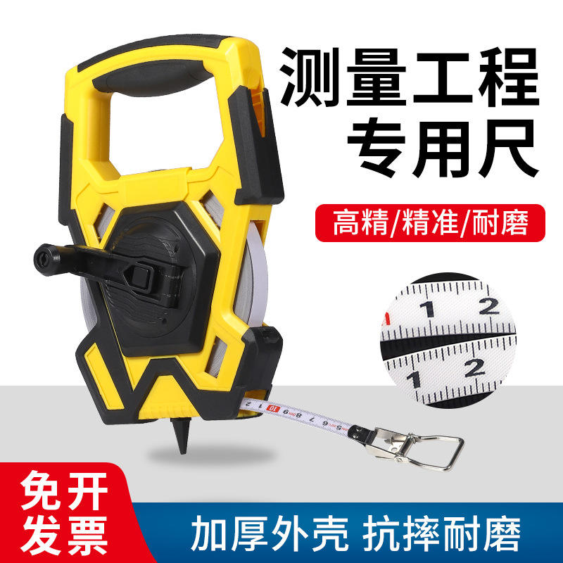 ตลับเมตรวัดระยะทางแบบมืออาชีพ 50 เมตร สายไนลอนเคลือบ ใบมีดสแตนเลส ระบบดึงกลับด้วยมือ พร้อมตัวล็อคแบบคันโยก ไม้บรรทัดแบบเมตริก