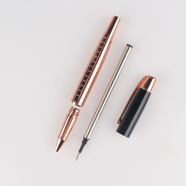 ปากกาลูกลื่นโลหะหรูหราพร้อมสลักลายมือแบบมืออาชีพ สีโรสโกลด์ พร้อมโลโก้สั่งทำพิเศษ