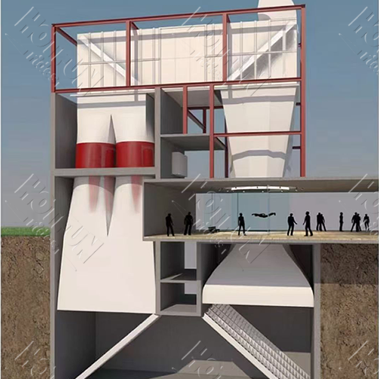 อุโมงค์ลมแนวตั้งสำหรับความบันเทิงระดับมืออาชีพ ผลิตจากโลหะและไฟเบอร์กลาส สำหรับการกระโดดร่มในร่มและกลางแจ้ง โดยผู้ผลิต