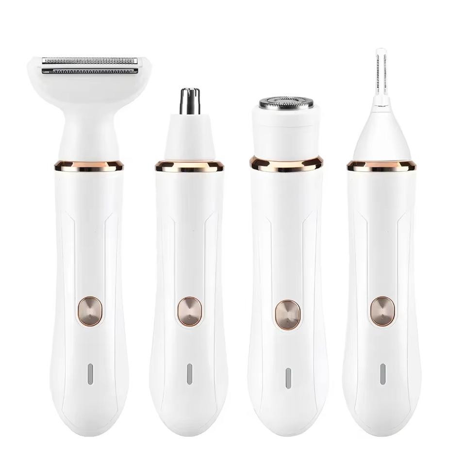 เครื่องกำจัดขนแบบมืออาชีพ 4 in 1 ปัตตาเลี่ยนตัดผม เครื่องเล็มขนตามร่างกาย สำหรับใบหน้า ขา คิ้ว จมูก หัวเปลี่ยนได้ ชาร์จผ่าน USB