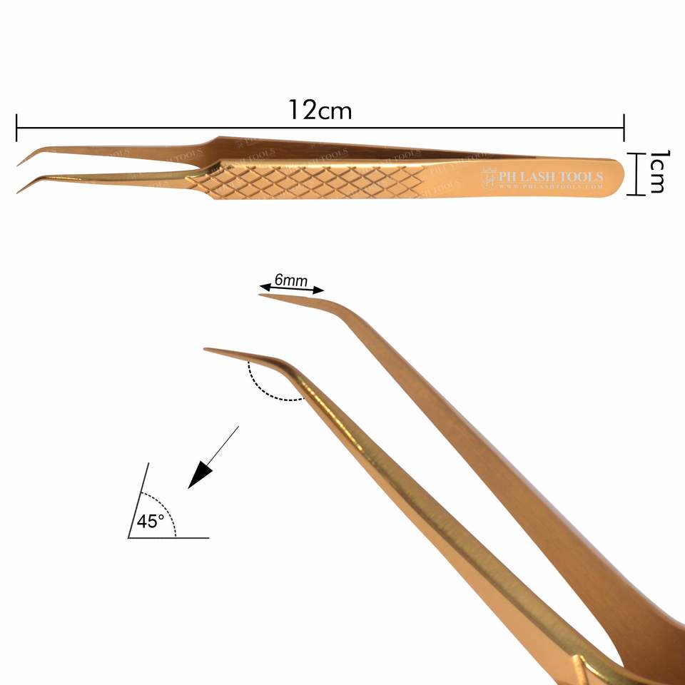เข็มต่อขนตาแบบมืออาชีพ,แหนบจมูกพร้อมใบมีดตัดเพชรฉลากส่วนตัวขนาด6มม. 45องศา