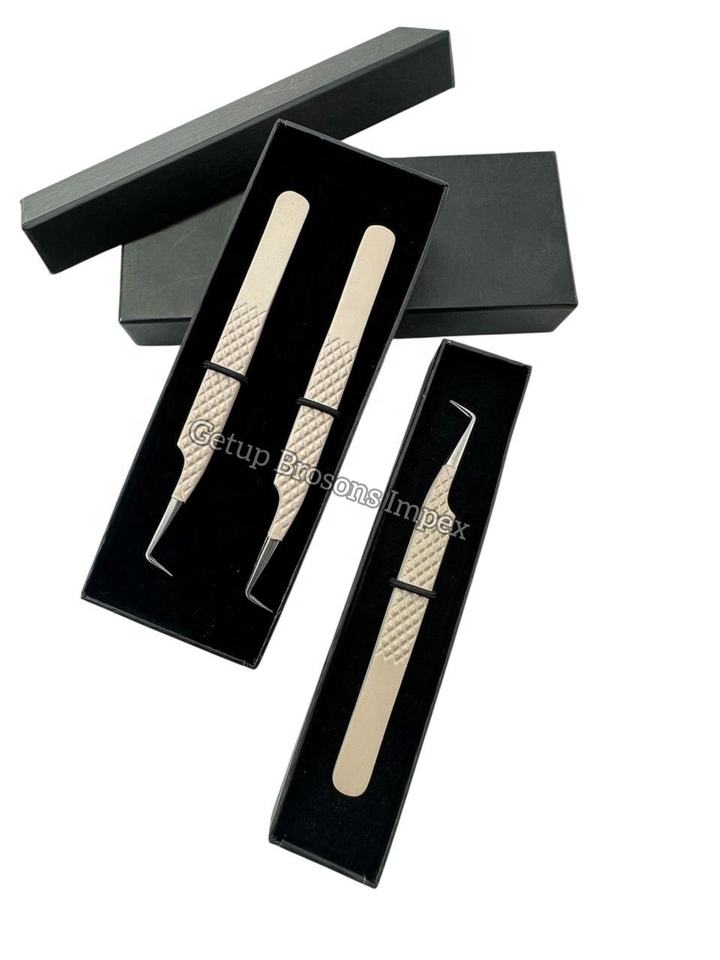 ชุดแหนบต่อขนตาสีนู้ดสำหรับมืออาชีพ สแตนเลสสตีล ป้องกันไฟฟ้าสถิต ปลายแหลม สำหรับต่อขนตาแบบวอลลุ่มและแยกเส้น