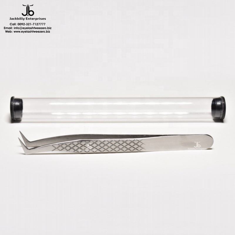แหนบต่อขนตามืออาชีพ: ขนาด L ประเภท12ซม., ปลาย8มม., ด้ามจับเพชรตัด, ผิวด้าน, กลมมองตรง